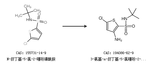 2.通过N-叔丁基-5-氯-2-噻吩磺酰胺合成3-氨基-n-叔丁基-5-氯噻吩-2-磺酰胺