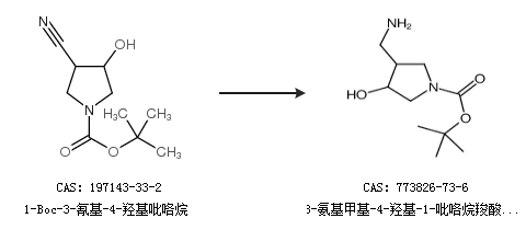1.通过1-Boc-3-氰基-4-羟基吡咯烷合成3-氨基甲基-4-羟基-1-吡咯烷羧酸-1,1-二甲基乙酯