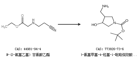 2.通过N-(2-氰基乙基) 甘氨酸乙酯合成3-氨基甲基-4-羟基-1-吡咯烷羧酸-1,1-二甲基乙酯