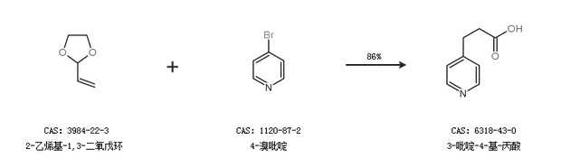 2.通过2-乙烯基-1,3-二氧戊环和4-溴吡啶合成3-吡啶-4-基-丙酸,收率约86%;