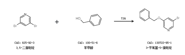 1.通过3,5-二溴吡啶和苯甲醇合成3-苄氧基-5-溴吡啶,收率约73%;