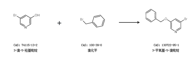 2.通过3-溴-5-羟基吡啶和溴化苄合成3-苄氧基-5-溴吡啶