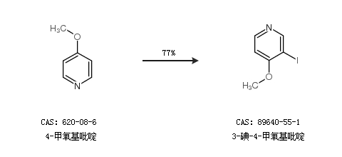 1.通过4-甲氧基吡啶合成3-碘-4-甲氧基吡啶,收率约77%;