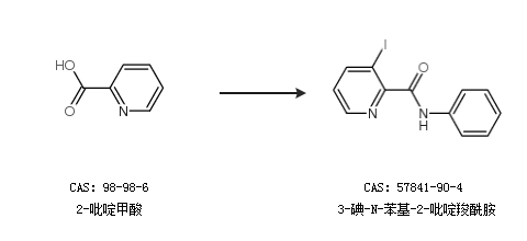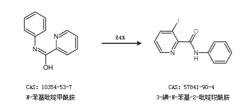 1.通过N-苯基吡啶甲酰胺合成3-碘-N-苯基-2-吡啶羧酰胺,收率约64%;