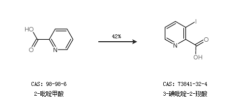 1.通过2-吡啶甲酸合成3-碘吡啶-2-羧酸,收率约42%;