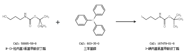 2.通过N-(3-羟丙基)氨基甲酸叔丁酯和三苯基膦合成3-碘丙基氨基甲酸叔丁酯