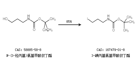 1.通过N-(3-羟丙基)氨基甲酸叔丁酯合成3-碘丙基氨基甲酸叔丁酯,收率约85%;
