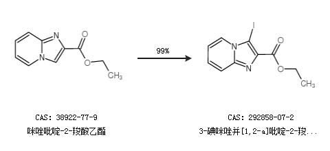 1.通过咪唑吡啶-2-羧酸乙酯合成3-碘咪唑并[1,2-a]吡啶-2-羧酸乙酯,收率约99%;