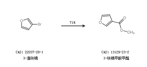 1.通过3-溴呋喃合成3-呋喃甲酸甲酯,收率约71%;
