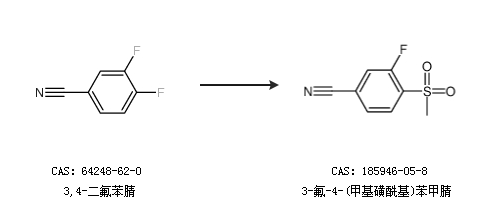 1.通过3,4-二氟苯腈合成3-氟-4-(甲基磺酰基)苯甲腈