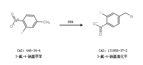 1.通过3-氟-4-硝基甲苯合成3-氟-4-硝基溴化苄,收率约89%;