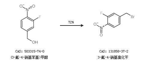 2.通过(3-氟-4-硝基苯基)甲醇合成3-氟-4-硝基溴化苄,收率约72%;