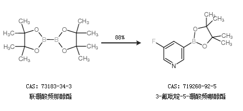 1.通过联硼酸频那醇酯合成3-氟吡啶-5-硼酸频哪醇酯,收率约88%;