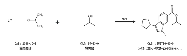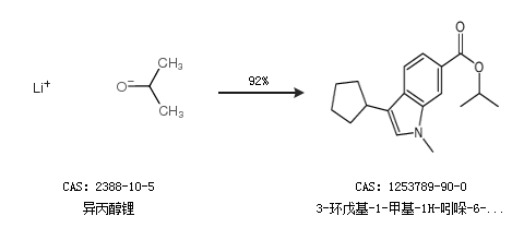 2.通过异丙醇锂和异丙醇合成3-环戊基-1-甲基-1H-吲哚-6-羧酸异丙酯,收率约97%;