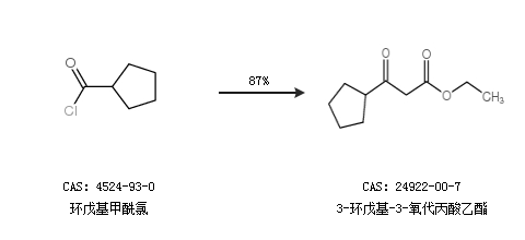 1.通过环戊基甲酰氯合成3-环戊基-3-氧代丙酸乙酯,收率约87%;