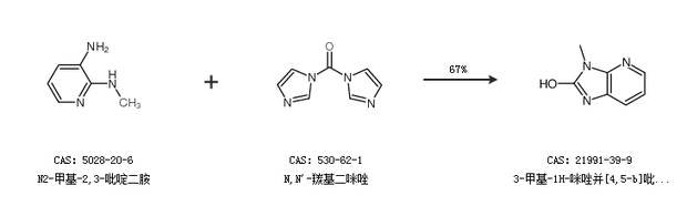 1.通过N2-甲基-2,3-吡啶二胺和N,N''-羰基二咪唑合成3-甲基-1H-咪唑并[4,5-b]吡啶-2(3H)-酮,收率约67%;