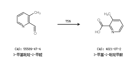 2.通过3-甲基吡啶-2-甲醛合成3-甲基-2-吡啶甲酸,收率约75%;