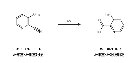 1.通过2-氰基-3-甲基吡啶合成3-甲基-2-吡啶甲酸,收率约82%;