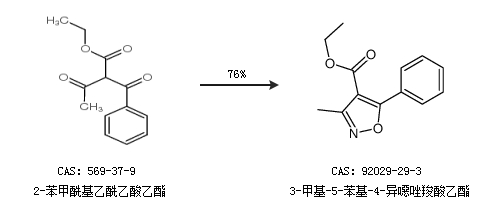 1.通过2-苯甲酰基乙酰乙酸乙酯合成3-甲基-5-苯基-4-异噁唑羧酸乙酯,收率约76%;