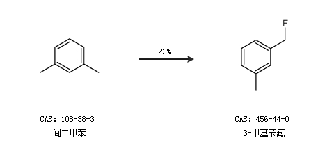 2.通过间二甲苯合成3-甲基苄氟,收率约23%;