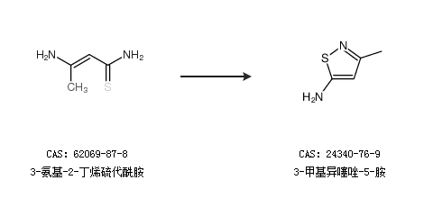 1.通过3-氨基-2-丁烯硫代酰胺合成3-甲基异噻唑-5-胺