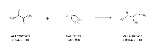 2.通过3-巯基-2-丁酮和硫酸二甲酯合成3-甲巯基-2-丁酮