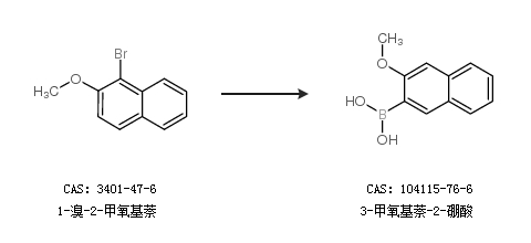 1.通过1-溴-2-甲氧基萘合成3-甲氧基萘-2-硼酸