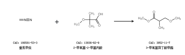 1.通过重氮甲烷和2-甲氧基-2-甲基丙酸合成3-甲氧基异丁酸甲酯