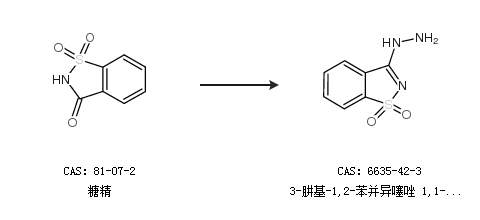 1.通过糖精合成3-肼基-1,2-苯并异噻唑 1,1-二氧化物