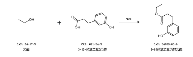 1.通过乙醇和3-(3-羟基苯基)丙酸合成3-邻羟基苯基丙酸乙酯,收率约99%;