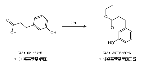2.通过3-(3-羟基苯基)丙酸合成3-邻羟基苯基丙酸乙酯,收率约92%;