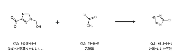 2.通过(9ci)-3-硝基-1H-1,2,4-噻唑-1-甲醇和乙酰氯合成3-氯-1,2,4-三唑