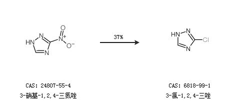 1.通过3-硝基-1,2,4-三氮唑合成3-氯-1,2,4-三唑,收率约37%;