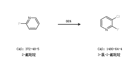 2.通过2-氟吡啶合成3-氯-2-氟吡啶,收率约86%;
