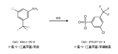 1.通过3-氯-5-(三氟甲基)苯胺合成3-氯-5-(三氟甲基)苯磺酰氯,收率约85%;