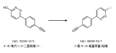 1.通过4-(6-氧代-1,6-二氢吡嗪-3-基)苯甲腈合成3-氯-6-(4-氰基苯基)哒嗪