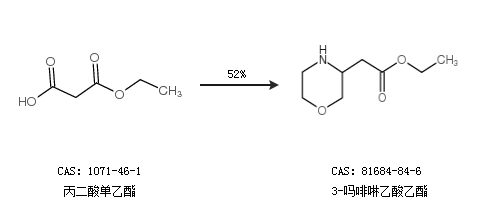 1.通过丙二酸单乙酯合成3-吗啡啉乙酸乙酯,收率约52%;