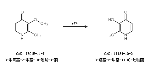 2.通过3-甲氧基-2-甲基-1H-吡啶-4-酮合成3-羟基-2-甲基-4(1H)-吡啶酮,收率约74%;