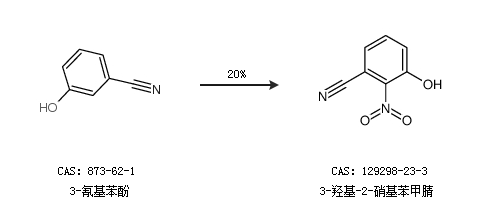 2.通过3-氰基苯酚合成3-羟基-2-硝基苯甲腈,收率约20%;