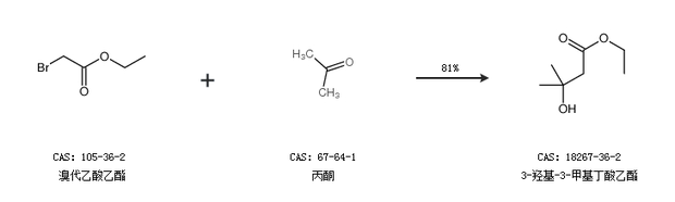 2.通过溴代乙酸乙酯和丙酮合成3-羟基-3-甲基丁酸乙酯,收率约81%;
