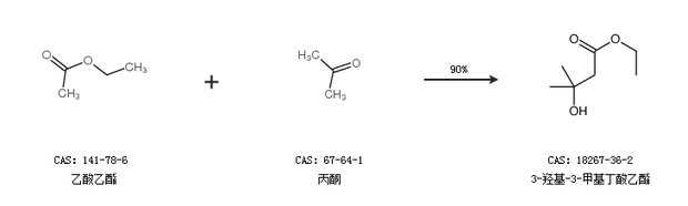 1.通过乙酸乙酯和丙酮合成3-羟基-3-甲基丁酸乙酯,收率约90%;