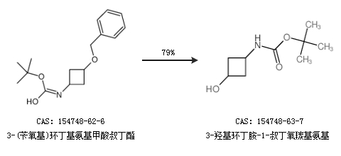 1.通过3-(苄氧基)环丁基氨基甲酸叔丁酯合成3-羟基环丁胺-1-叔丁氧羰基氨基,收率约79%;