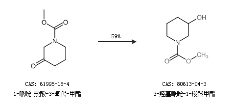 2.通过1-哌啶 羧酸-3-氧代-甲酯合成3-羟基哌啶-1-羧酸甲酯,收率约59%;