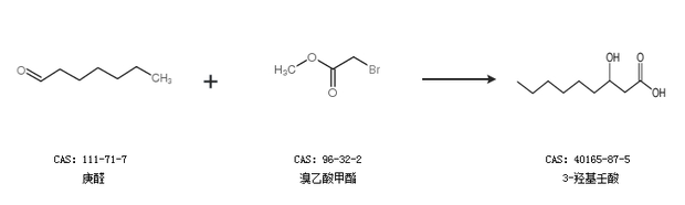 1.通过庚醛和溴乙酸甲酯合成3-羟基壬酸