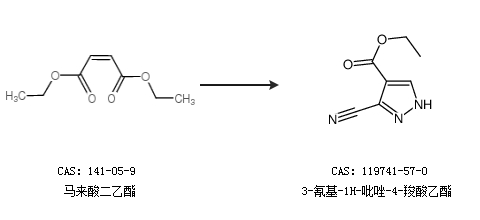 1.通过马来酸二乙酯合成3-氰基-1H-吡唑-4-羧酸乙酯