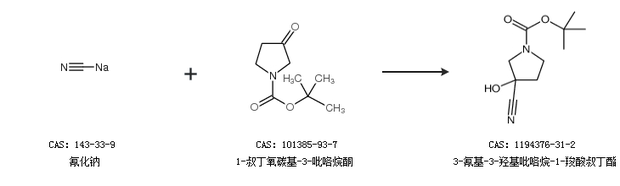 1.通过氰化钠和1-叔丁氧碳基-3-吡咯烷酮合成3-氰基-3-羟基吡咯烷-1-羧酸叔丁酯