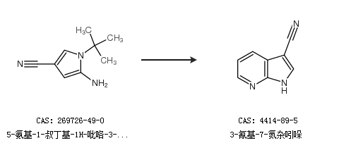 2.通过5-氨基-1-叔丁基-1H-吡咯-3-甲腈合成3-氰基-7-氮杂吲哚