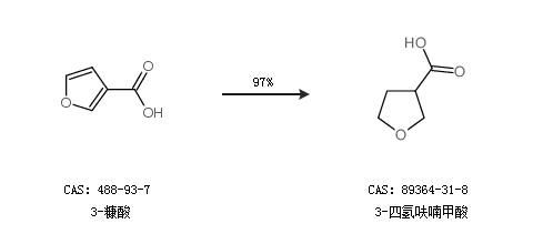 1.通过3-糠酸合成3-四氢呋喃甲酸,收率约97%;