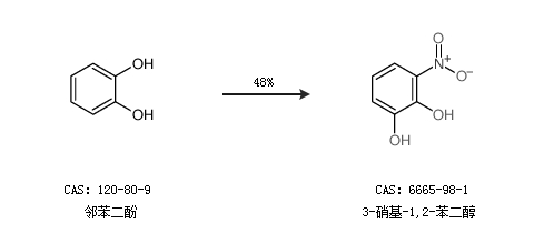 2.通过邻苯二酚合成3-硝基-1,2-苯二醇,收率约48%;