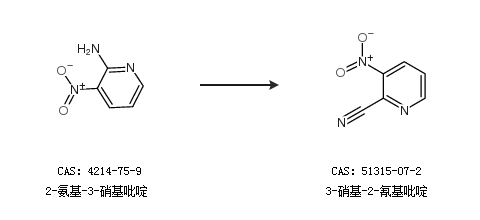 1.通过2-氨基-3-硝基吡啶合成3-硝基-2-氰基吡啶